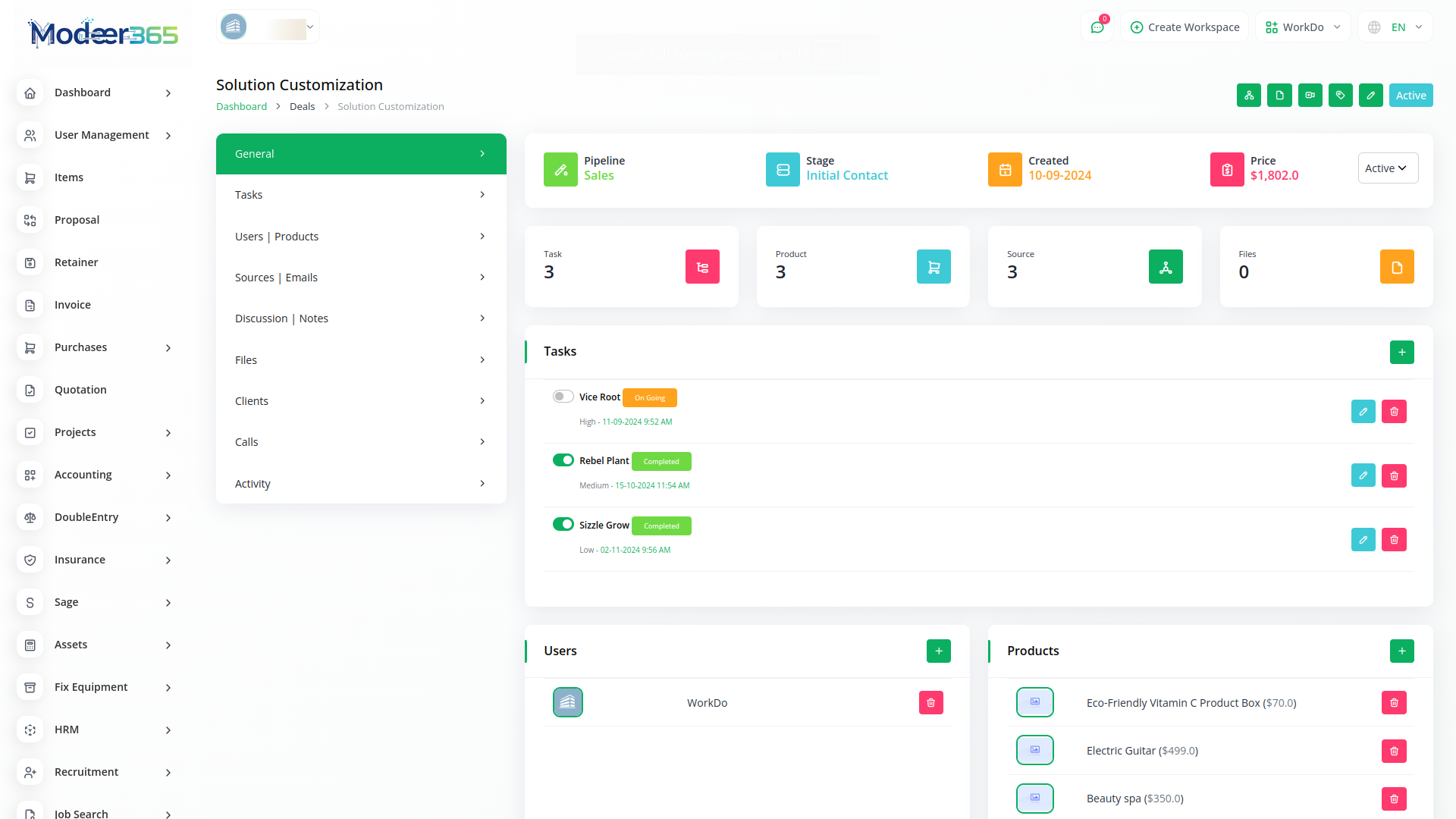 With Modeer365, you can conveniently manage all your business functions from a single location.
