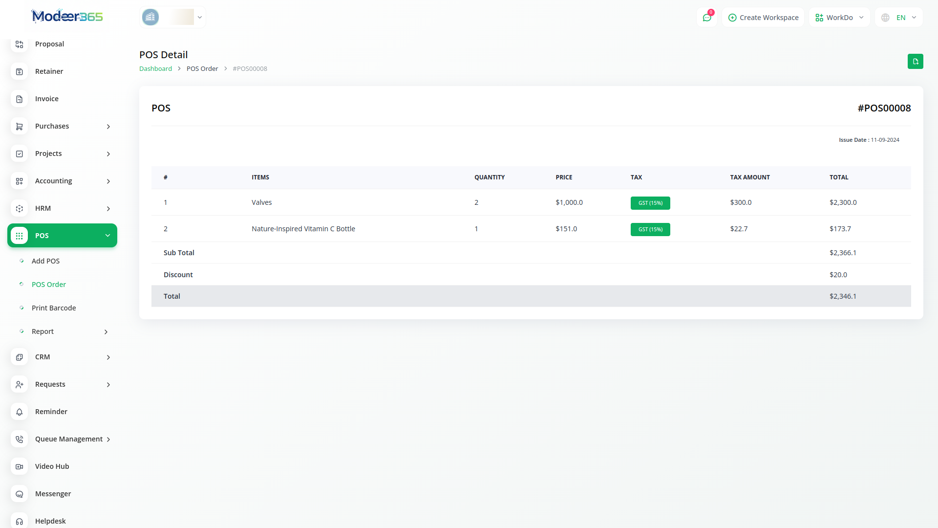 Simplify sales management with Modeer365 POS. Track revenue, manage products, process orders, and utilize barcode functionality for seamless transactions.